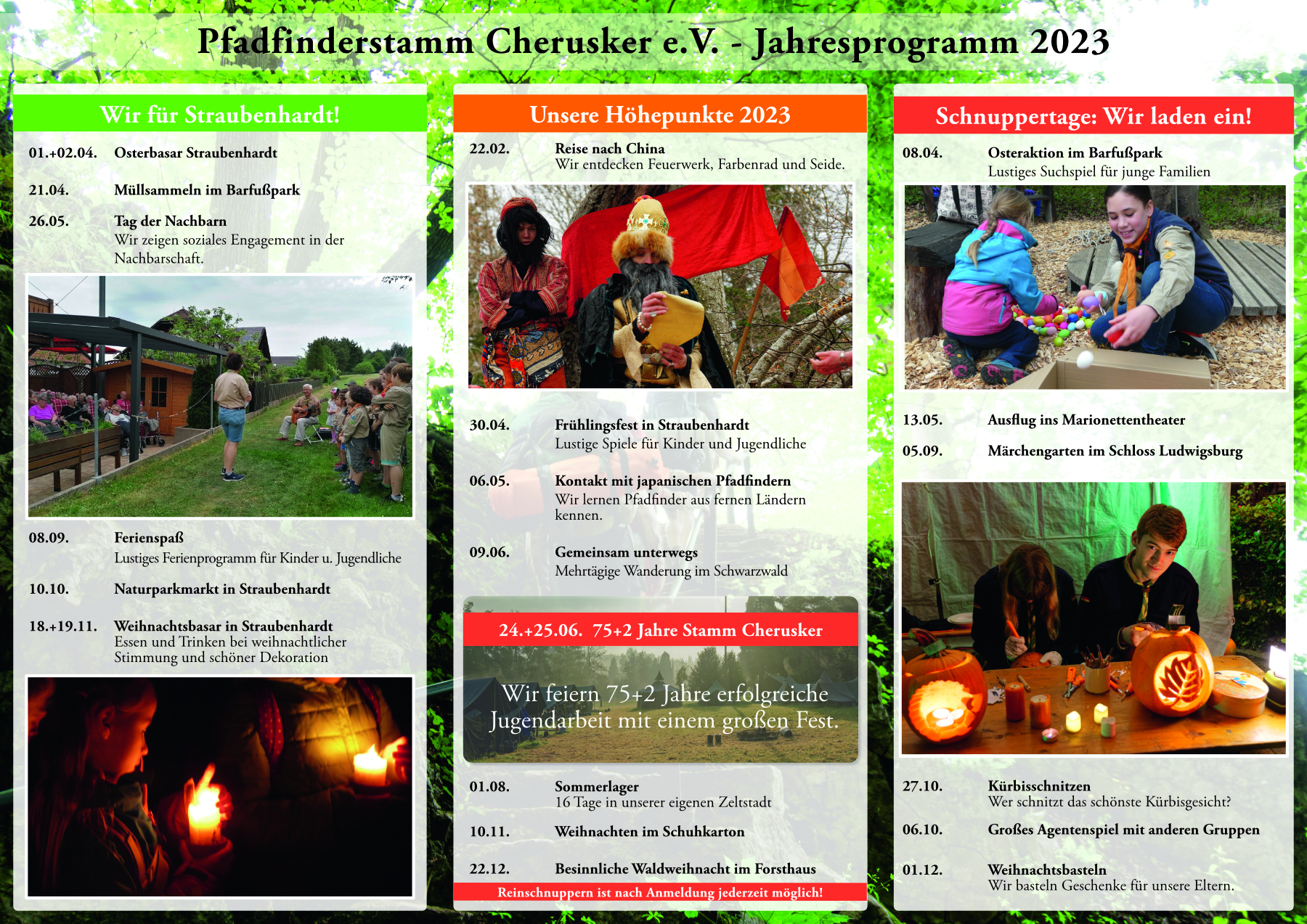 Wir Pfadfinder feiern in diesem Jahr. - Gerade mal ein Jahr nach Kriegsende haben sich 1946 die ersten Cherusker versammelt, um gemeinsam Fahrten und Zeltlager zu erleben. Grund genug für uns, daran zu erinnern und das 2 Jahre lang verschobene Jubiläumsfest nun im Juni zu feiern