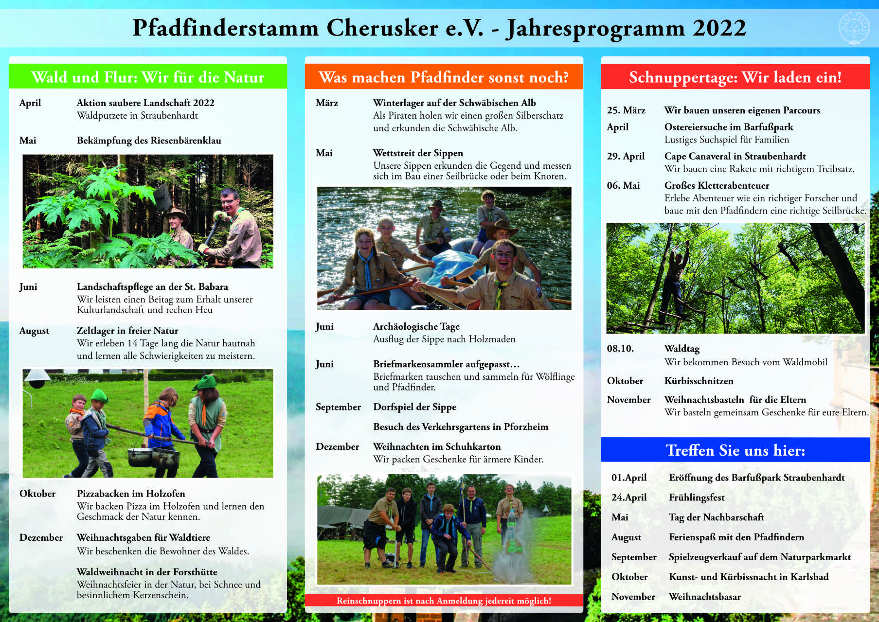 Dieses Jahr richten wir unseren Blick ganz bewusst auf die Natur, deren Erhalt und Schutz. Nichts hilft Kindern mehr! Nichts kann einen vergleicharen Ausgleich zu Kindergarten, Schule und Alltag schaffen als die Natur. Ihre Wiesen, Felder und Wälder sind nicht nur Lebensraum, sondern spenden uns allen Kraft und fördern unsere Kreativität. Diese Welt der Natur ist für die Kinder und Jugendlichen voller wunderbarer Geheimnisse und wartet nur darauf, entdeckt und erforscht zu werden. Für unsere Pfadfinderarbeit bedeutet das, Kinder in ihrem Forscherdran zu bestätigen und ihnen zu zeigen, was die Umwelt alles für sie bereithält. Praktisches Begreifen ist wesentlicher Bestandteil der Bildung, denn so wird nicht nur Wissen, sondern Verständnis, Erfahrung, und letztlich: Selbstvertrauen geschaffen. Und so werden wir uns dieses Jahr vielen Themen der Natur aber auch der Technik annähern, die uns unmittelbar im Leben begegnen: Elektrizität, Wasserkraft, Wetter, Geologie und Biologie.