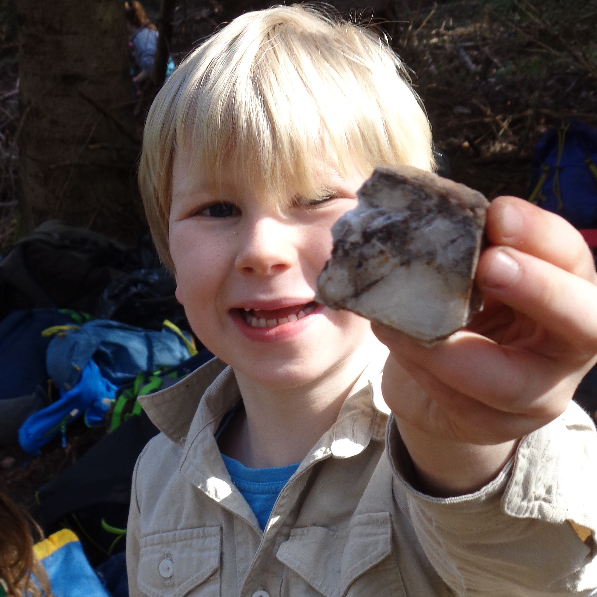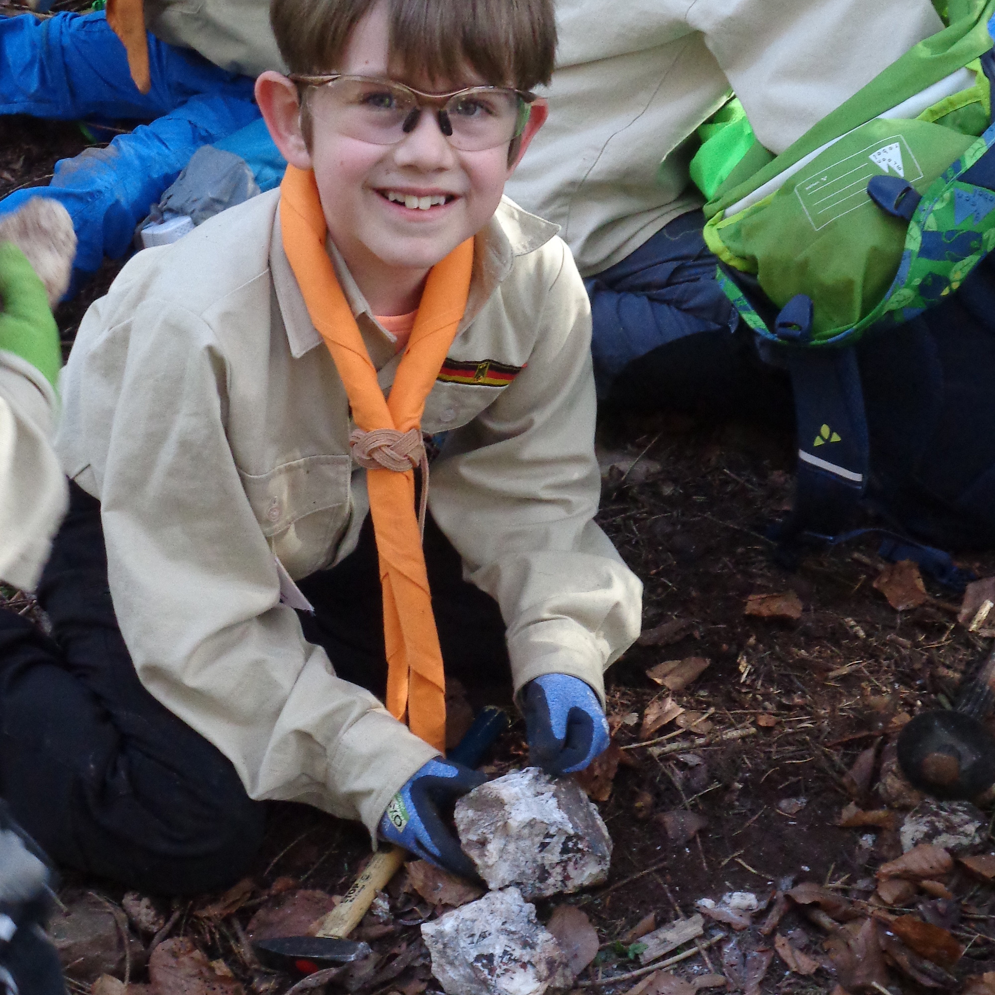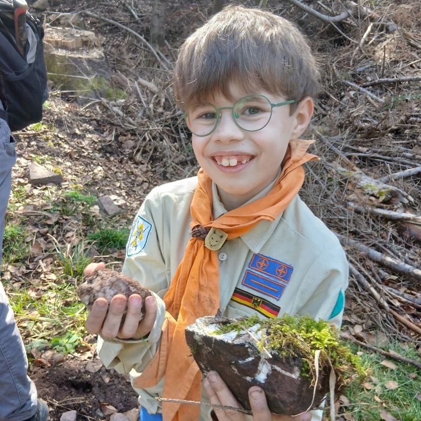 Voll Tatendrang ziehen die jungen Pfadfinder in den Wald und werden bald fündig! Große und kleine Gesteinsbrocken sammeln sich und werden genau unter die Lupe genommen. Mit Hammer und Meißel können die Wölflinge auch ins Innere der Steine blicken und entdecken viele verschiedene Mineralien. Die schönsten Funde darf jeder natürlich mit nach Hause nehmen, auch wenn die Auswahl nicht immer leicht fällt.