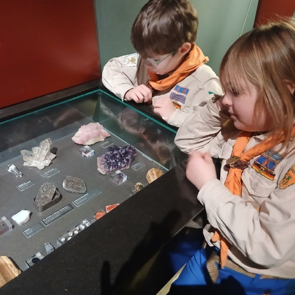 Von Vulkanen und Gebirgen spricht die Expertin und wie in der Tiefe unter hohem Druck die Kristalle entstehen. Viele bunte Farben haben die Gesteine, die nacheinander durch die Reihen gegeben werden. Dabei beobachten die Kinder genau wie die Steine geformt sind und befühlen die Oberflächen. Alle möglichen Fragen haben die Wölflinge. Wie kommt es zu den verschiedenen Farben der Gesteine? Wie lange dauert es, bis ein Edelstein gewachsen ist? Geduldig beantwortet unsre Expertin alle Fragen. Dann dürfen die Wölflinge in kleinen Gruppe noch einmal alle Gesteine genauer betrachten. Zuletzt gibt es noch eine Überraschung: Jeder Wölfling darf sich einen Edelstein aus einer Kiste auswählen. Wie schön! Der passt perfekt in unsere Gesteinssammlung. Viel zu schnell ist damit unser Treffen zu Ende. Doch am nächsten Morgen soll es auch schon weiter gehen. Ein Ausflug ins Naturkundemuseum steht für unsere kleinen Forscher an. Auf zum nächsten Abenteuer!