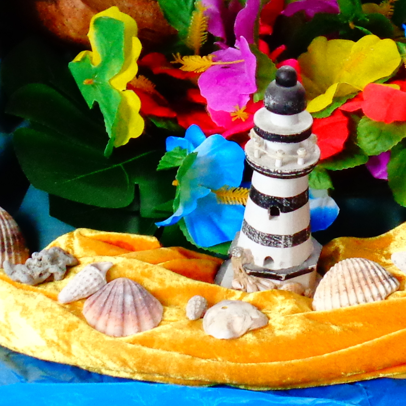 Schnell errichten die Matrosen ein Basislager am Strand der Insel. Schon in der Dämmerung wollen sie die erste Erkundungstour auf die Insel unternehmen. Schnell finden sich die ersten exotischen Dinge. Kokosnuss und Banane sind uns noch fremd. Exotische Vogelfedern und bunte Blumen sammeln sich mit Muscheln und einem Seestern auf dem Tisch der Entdecker.